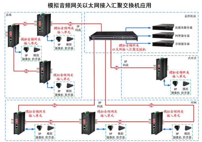 工業以太網接入匯聚交換機是江蘇新創自主研發創新,專門為大容量模擬音頻網關IP碼流通過單模、多模光纖或電纜接入匯聚到中心視頻監控存儲系統或管理平臺而設計。采用以太網接入、匯聚和核心交換路由管理技術,采用多層以太網核心交換技術,單機大可支持高達10000路IP高標清網路視頻、多路控制數據流接入匯聚和視頻交換組播服務。提供單機120G總容量。單機支持大48個百兆/千兆以太網SFP光電接口,4個萬兆SFP+光電口,支持高達768個端口的單IP地址堆疊管理能力。接入匯聚交換機的光電接口與前端以太網接入單元可構成多個網格型、環網及多環相切形、T形、總線、星型匯聚等自愈備份或冗余備份光纖等各種復雜的高可靠傳輸網絡。采用高速實時工業以太網保護及交換協議,支持工業以太網1+1端口保護、1:1端口保護、1:N端口保護,支持30ms的快速自愈環網及冗余保護恢復時間。多個平臺機架夠堆疊。任意光電口都可組合支持TRUNK及聚合功能,提供通信容量。多個接入匯聚交換機可通過光纖連成帶寬高達20G/40G的點對點冗余備份、點對多點星型、自愈環網、多點對多點網格型、T型、總線型等各種網絡拓撲,構建和延伸高可靠、大地理范圍、分布式扁平化和網格化的IP視頻監控及數據通信網絡。