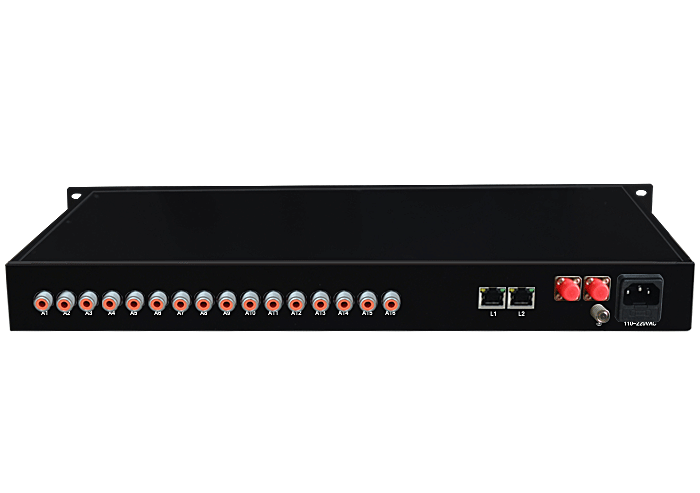 16路數字音頻網關總線級聯型接入單元,2光2電百兆/千兆以太網接口,多路控制數據/報警開關量可選,單模/多模/塑料,1/2纖,ST/FC/SC/LC/SFP光接口,15/20/25/32dB,獨立/冗余供電,1U機架,通用型 |