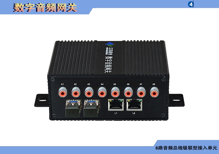 4路數字音頻網關總線級聯型接入單元,2光2電百兆/千兆以太網接口,多路控制數據/報警開關量可選,單模/多模/塑料,1/2纖,ST/FC/SC/LC/SFP光接口,15/20/25/32dB,獨立/冗余供電,壁掛,通用型 |