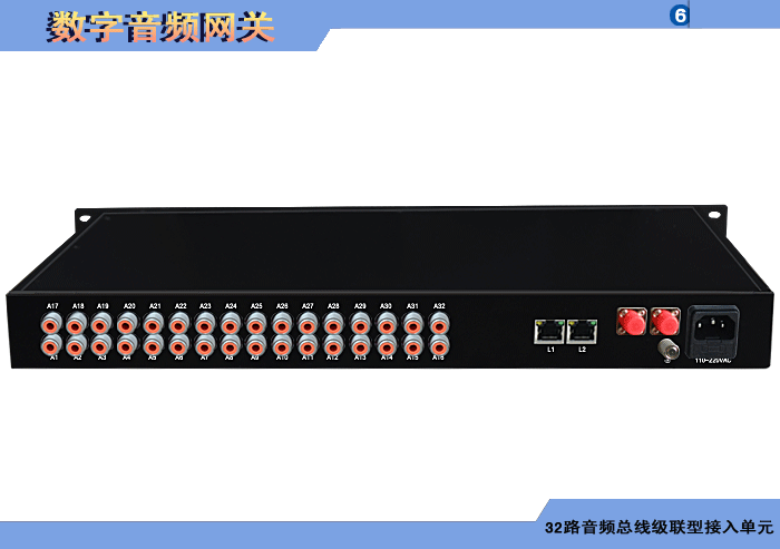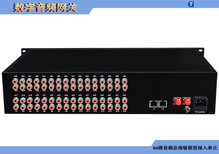4/8/16/24/32/48/64路數字音頻網關總線級聯型接入單元,2光2電百兆/千兆以太網接口,多路控制數據/報警開關量可選,單模/多模/塑料,1/2纖,獨立/冗余供電,壁掛,防水型 |