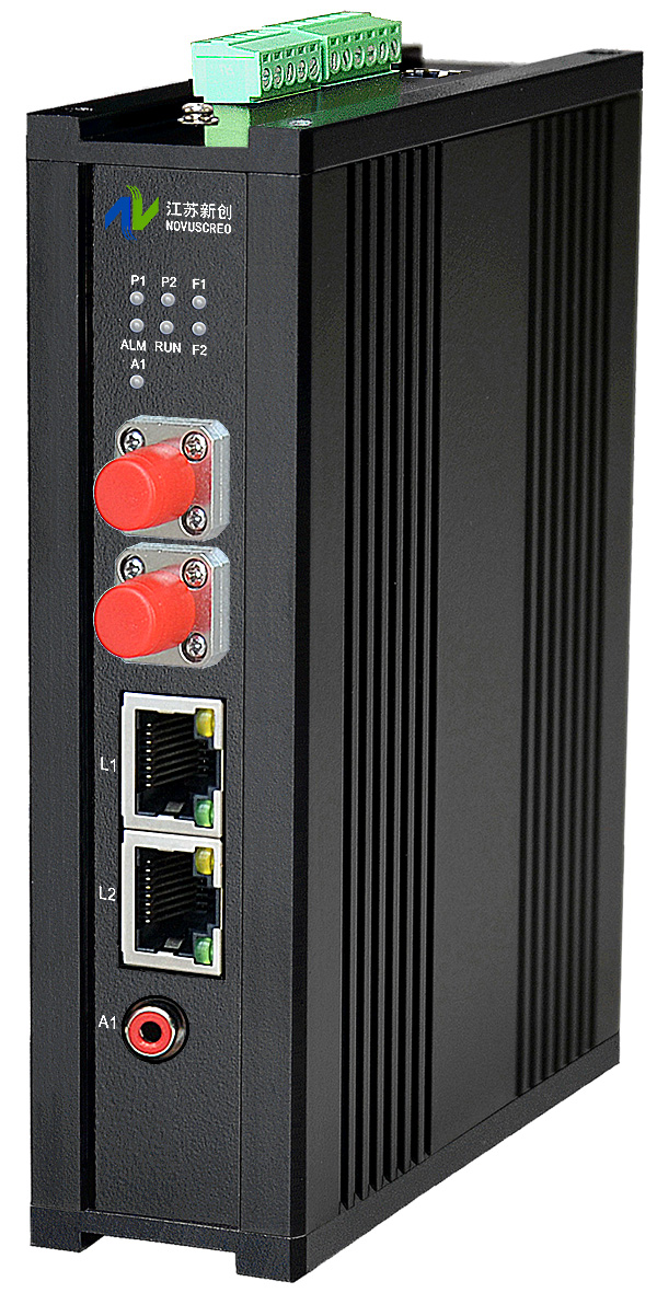 2路數字音頻網關總線級聯型接入單元,2光2電百兆/千兆以太網接口,多路控制數據/報警開關量可選,單模/多模/塑料,1/2纖,ST/FC/SC/LC/SFP光接口,15/20/25/32dB,獨立/冗余/總線供電(DC18~36V/5V),導軌,工業型,非網管/網管/帶光纖數字診斷網管 |