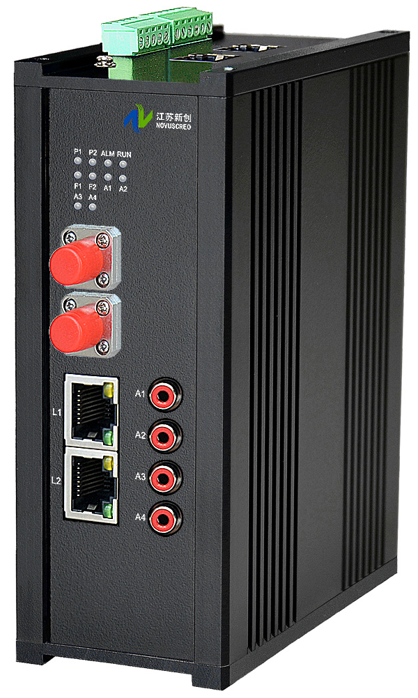 4路數字音頻網關總線級聯型接入單元,2光2電百兆/千兆以太網接口,多路控制數據/報警開關量可選,單模/多模/塑料,1/2纖,ST/FC/SC/LC/SFP光接口,15/20/25/32dB,獨立/冗余/總線供電(DC18~36V/5V),導軌,工業型,非網管/網管/帶光纖數字診斷網管 |