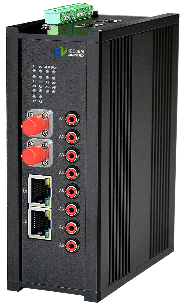 8路數字音頻網關總線級聯型接入單元,2光2電百兆/千兆以太網接口,多路控制數據/報警開關量可選,單模/多模/塑料,1/2纖,ST/FC/SC/LC/SFP光接口,15/20/25/32dB,獨立/冗余/總線供電(DC18~36V/5V),導軌,工業型,非網管/網管/帶光纖數字診斷網管 |