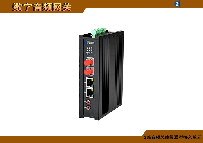 2路數字音頻網關總線級聯型接入單元,2光2電百兆/千兆以太網接口,多路控制數據/報警開關量可選,單模/多模/塑料,1/2纖,ST/FC/SC/LC/SFP光接口,15/20/25/32dB,獨立/冗余供電,壁掛,通用型 |