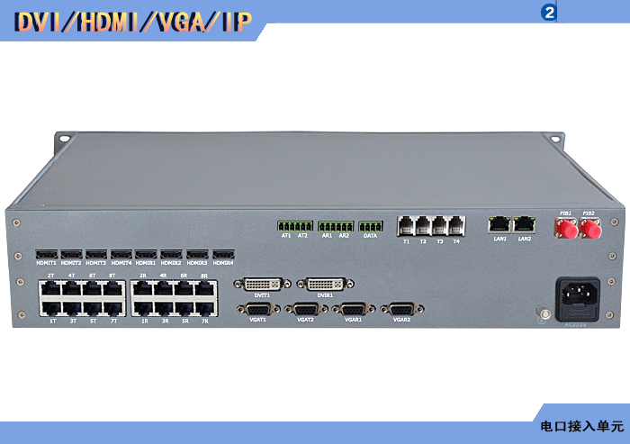 遠程高標清數字化法庭系統電口接入單元,1/2/4/8路DVI顯示屏電口輸出,1/2/4/8路模擬/數字雙向立體聲音頻可選,1/2/4/8路可選數據,多路電話或百兆/千兆以太網可選,單模/多模,獨立/冗余供電,2U機架,非網管/網管/帶光纖數字診斷網管 |