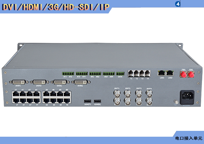 DVI/HDMI/DP/VGA/YPbPr/3G/HD-SDI/模擬標清視頻攝像機+DVI/HDMI/DP/VGA/YPbPr/3G/HD-SDI//模擬標清視頻顯示屏系列電口接入單元 |