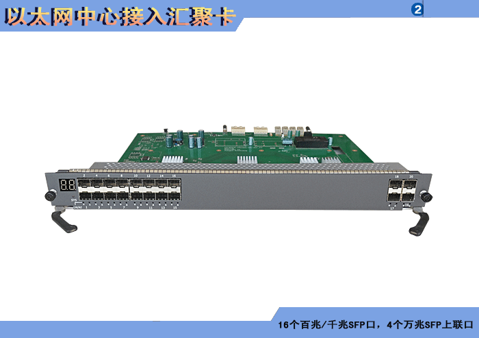 配置 以太網中心接入匯聚卡,16個百兆/千兆 SFP口,4個千兆SFP上聯口,L2/L3層交換,可堆疊,背板供電,19英寸插卡,通用型/工業型。