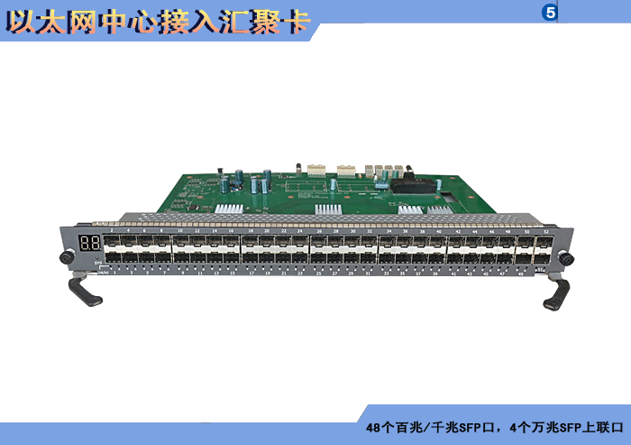 配置 以太網中心接入匯聚卡,48個百兆/千兆 SFP口,4個千兆SFP上聯口,L2/L3層交換,可堆疊,背板供電,19英寸插卡,通用型/工業型。