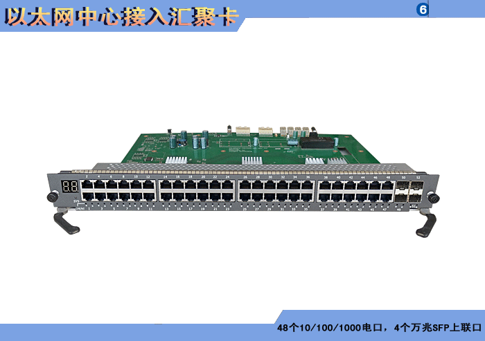 配置 以太網中心接入匯聚卡,48個10/100/1000電口,4個千兆SFP上聯口,L2/L3層交換,可堆疊,背板供電,19英寸插卡,通用型/工業型。
