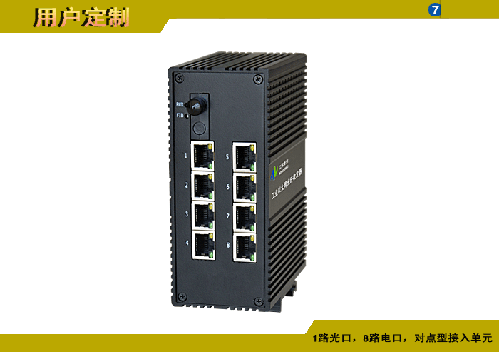 以太網(wǎng)點對點接入單元,8路10/100/1000M電口,1路光纖接口,100M/1G/10G光口可選,單模/多模/塑料,1/2纖,獨(dú)立供電(DC18~36V/5V),導(dǎo)軌,通用型 |
