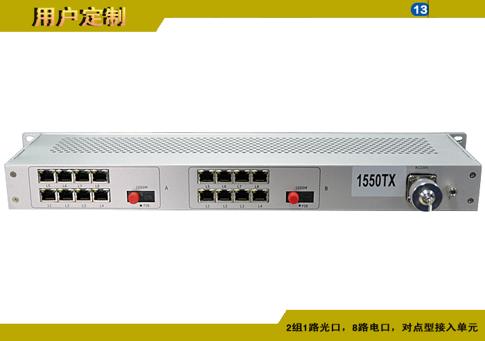 以太網(wǎng)點對點接入單元,8路10/100/1000M電口,1路光纖接口,100M/1G/10G光口可選,單模/多模/塑料,1/2纖,獨(dú)立供電(DC18~36V/5V),機(jī)架,通用型 |