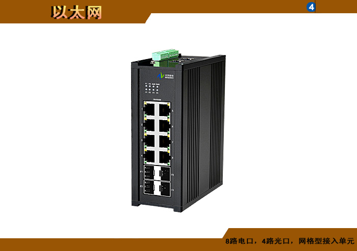 以太網(wǎng)網(wǎng)格型接入單元,8路10/100/1000M電口,4路光纖接口,100M/1G/10G光口可選,單模/多模/塑料,1/2纖,獨立/冗余/總線供電(DC18~36V/5V),導(dǎo)軌,工業(yè)型 |