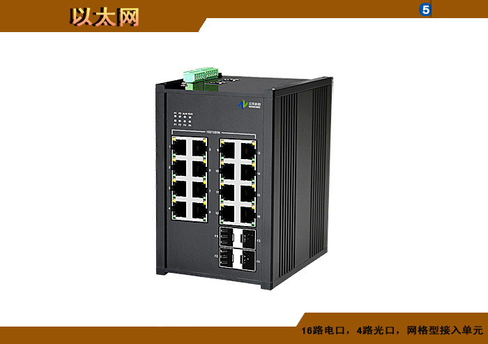以太網(wǎng)網(wǎng)格型接入單元,16路10/100/1000M電口,4路光纖接口,100M/1G/10G光口可選,單模/多模/塑料,1/2纖,獨立/冗余/總線供電(DC18~36V/5V),導(dǎo)軌,工業(yè)型 |