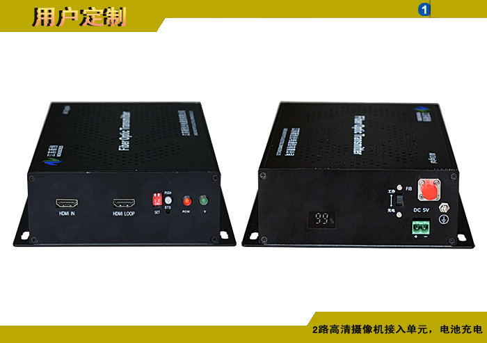 2路HDMI高清攝像機接入發射單元,RS-232/485/422控制數據可選,單模/多模,1/2纖,ST/FC/SC/LC/SFP光接口,壁掛,通用型,非網管/網管/帶光纖數字診斷網管,帶電池充電 |