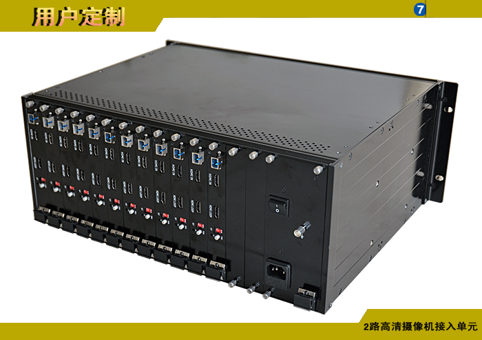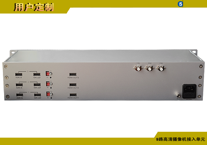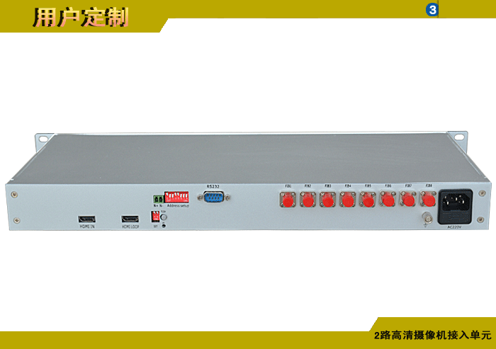 9路HDMI高清攝像機接入接收單元,RS-232/485/422控制數據可選,單模/多模,1/2纖,ST/FC/SC/LC/SFP光接口,2U機架,通用型,非網管/網管/帶光纖數字診斷網管 |