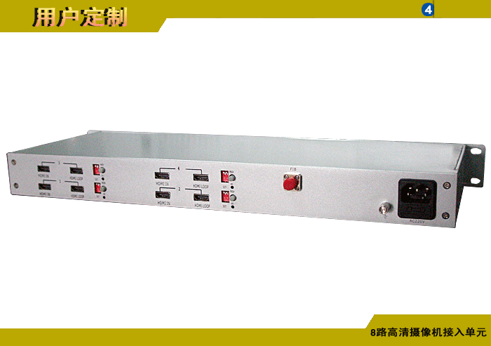 8路HDMI高清攝像機接入發射單元,RS-232/485/422控制數據可選,單模/多模,1/2纖,ST/FC/SC/LC/SFP光接口,壁掛,通用型,非網管/網管/帶光纖數字診斷網管 |