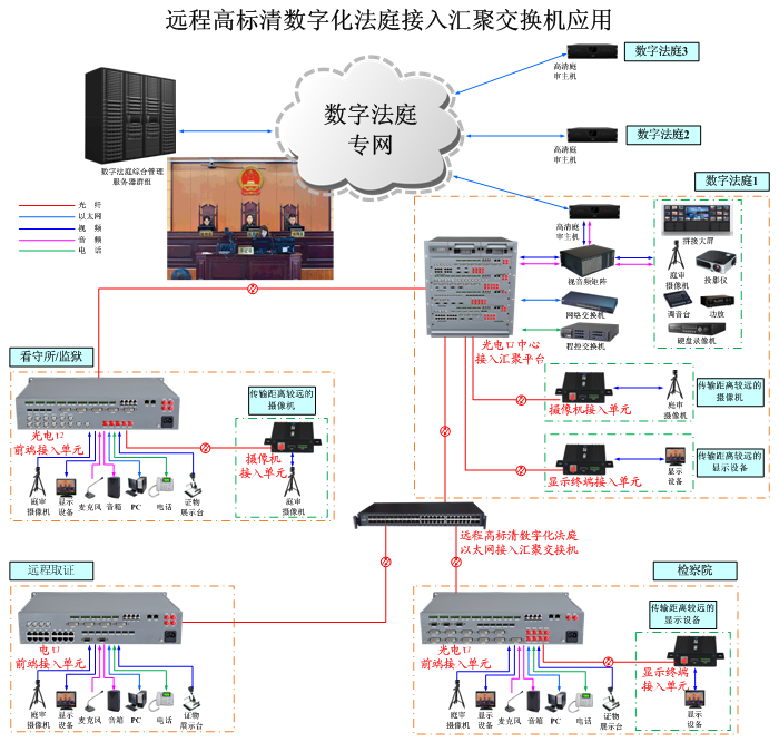 工業以太網接入匯聚交換機已經廣泛應用在各級人民法院數字化法庭、高清庭審、審判高清直播、遠程法庭、現場公審、聯合辦案、遠程會審、現場案件執法等數字化高清圖像顯示、庭審錄制、直播和會議系統中。