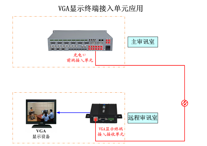 VGA顯示終端接入單元已經廣泛應用在公安派出所、監獄、檢察系統、紀委、監察、海關等部門固定、移動或遠端審訊室的高標清數字化審訊系統和同步錄音錄像系統中。