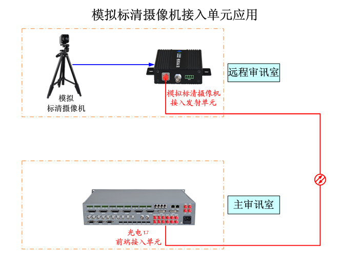 模擬標清攝像機接入單元支持標清數字化審訊系統的模擬標清攝像機信號通過光纖長距離傳輸到主控機房、審訊指揮中心主控室與矩陣或標清視頻審訊主機相連接。使用本接入單元將標清攝像機通過光纖遠程接入中心的標清數字化審訊系統,這樣很多小型審訊室或遠程審訊室就不需要設置控制室和放置審訊主機。通過接入單元與標清矩陣相配合,單臺標清視頻審訊主機可以給多個審訊室使用,大大提高了標清視頻審訊主機的使用效率,節省了標清數字化審訊設備的昂貴投資。接入單元自動支持PAL、NTSC、SECAM制式的高標清視頻。