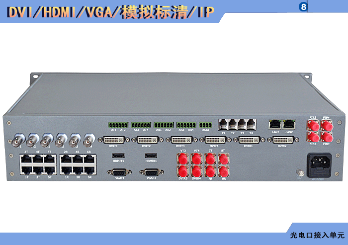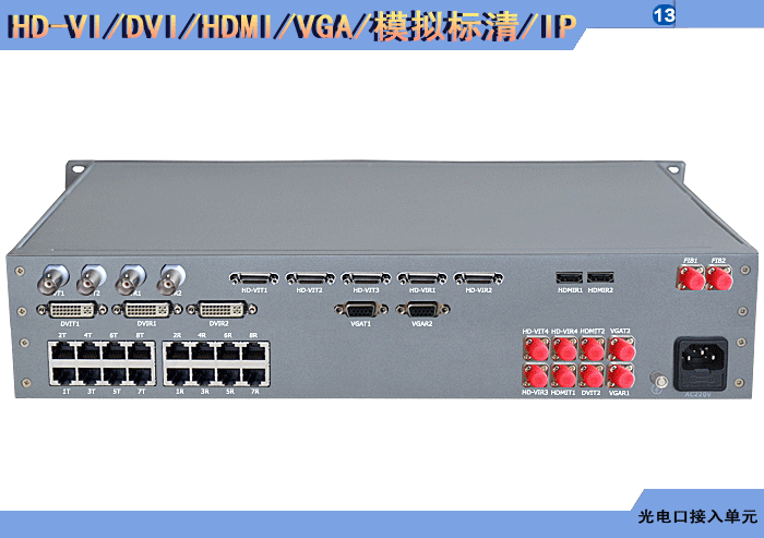 | HD-VI/DVI/HDMI/DP/VGA/YPbPr/模擬標清視頻/IP網絡攝像機+DVI/HDMI/DP/VGA/YPbPr/模擬標清視頻/IP網絡顯示屏系列光電口接入單元 | |||