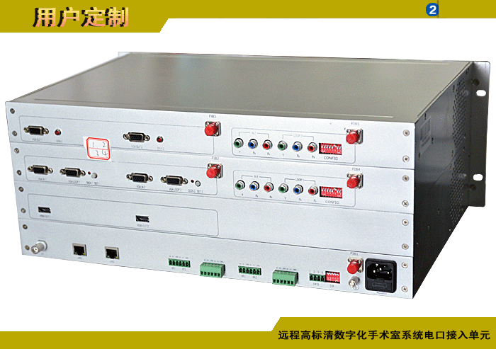 遠(yuǎn)程高標(biāo)清數(shù)字化手術(shù)室系統(tǒng)電口接入單元,1/2/4/8路HDMI/VGA/YPbPr/模擬標(biāo)清視頻攝像機(jī)電口輸入,1/2/4/8路HDMI/VGA/YPbPr/模擬標(biāo)清視頻顯示屏電口輸出,1/2/4/8路模擬/數(shù)字雙向立體聲音頻可選,1/2/4/8路可選數(shù)據(jù),多路電話(huà)或百兆/千兆以太網(wǎng)可選,單模/多模,獨(dú)立供電,4U機(jī)架,非網(wǎng)管/網(wǎng)管/帶光纖數(shù)字診斷網(wǎng)管 |