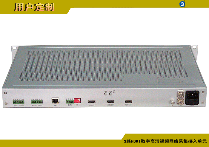 3路HDMI數(shù)字高清視頻網(wǎng)絡(luò)采集接入單元,1光2電百兆/千兆以太網(wǎng)接口,1路雙向音頻/報警開關(guān)量/控制數(shù)據(jù),單模/多模/塑料,1/2纖,ST/FC/SC/LC/SFP光接口,15/20/25/32dB,獨立供電,1U機架,通用型 |