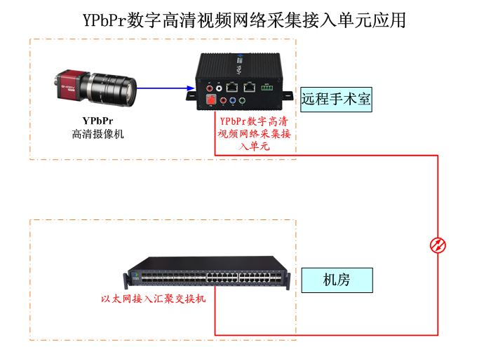 YPbPr模擬高清視頻網絡采集接入單元YPbPr模擬高清視頻接口可以輕松地將手術室攝像機或醫學影像設備的YPbPr模擬高清視頻信號轉成720P/1080P格式的IP實時視頻碼流,長距離傳輸到主控機房、手術室指揮中心主控室與醫學高清影像錄播、網絡顯示大屏、醫學影像讀閱片、遠程手術與會診、直播與示教等服務器或控制主機相連接。720P/1080P碼流最大512K~20Mbps,支持雙碼流,支持H.264/H.265壓縮編碼方式,支持ONVIF、大華PSS、雄邁NETIP、RTSP、GB28181 協議,可接入海康、大華NVR或支持28181的主流視頻存儲管理平臺。提供實時雙向音頻編解碼輸入輸出,提供報警控制開關量輸入或輸出,提供RS-485/422/232數據接口,方便各種醫學控制設備互聯互通,透明支持任意上層協議。