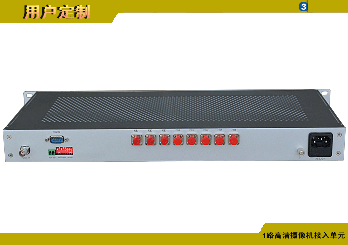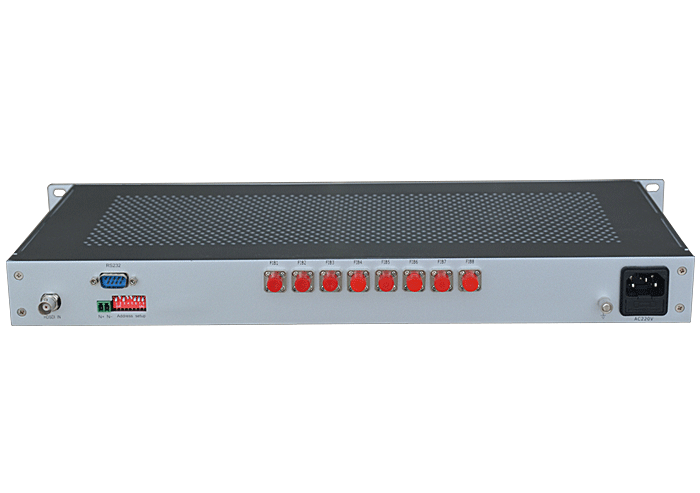 8路3G/HD/SD-SDI高清攝像機接入接收單元,RS-232/485/422控制數據可選,單模/多模,1/2纖,ST/FC/SC/LC/SFP光接口,1U機架,通用型,非網管/網管/帶光纖數字診斷網管 |
