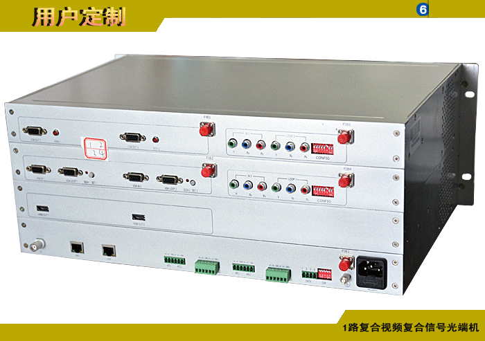 6路復(fù)合視頻復(fù)合信號(hào)型光端機(jī)發(fā)射機(jī)/接收機(jī),復(fù)合信號(hào)可選,單模/多模/塑料,1/2纖,ST/FC/SC/LC/SFP光接口,15/20/25/32dB,獨(dú)立/冗余供電,機(jī)架,通用型 |