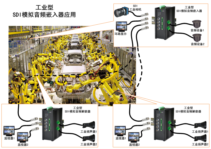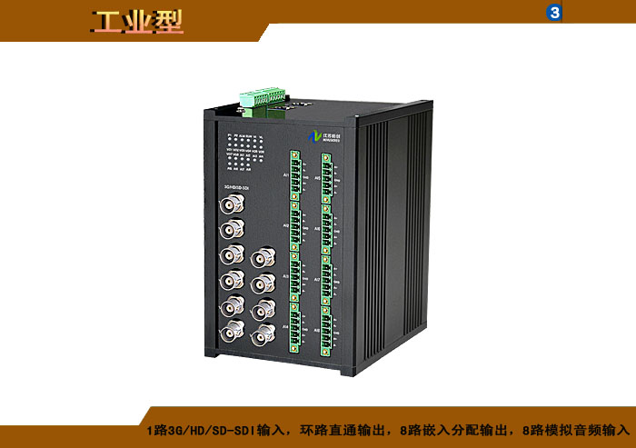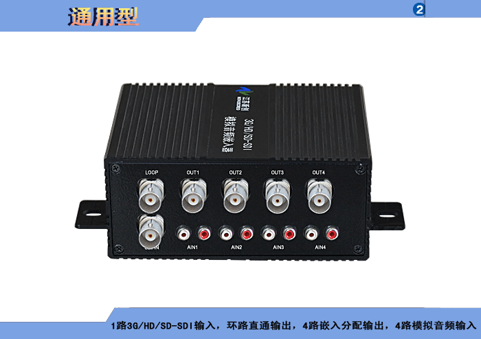 模擬音頻3G/HD/SD-SDI嵌入器,1路3G/HD/SD-SDI輸入,環路直通輸出,2/4/8/16路嵌入分配輸出,2/4/8路模擬音頻卡儂/端子/3.5mm/RCA接口輸入,獨立/冗余供電,壁掛/機架,防水型 |