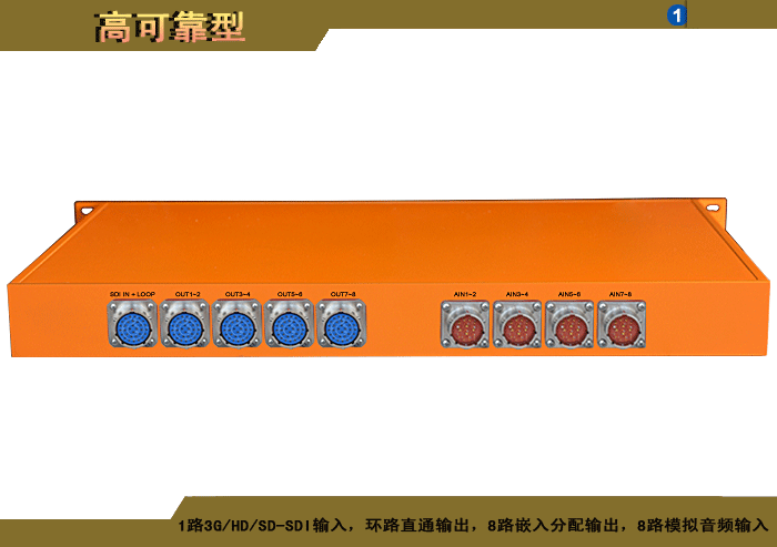 模擬音頻3G/HD/SD-SDI嵌入器,1路3G/HD/SD-SDI輸入,環路直通輸出,2/4/8/16路嵌入分配輸出,2/4/8路模擬音頻卡儂/端子/3.5mm/RCA接口輸入,獨立/冗余供電,壁掛/機架,高可靠型 |