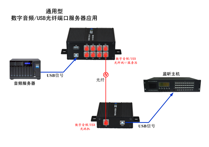 1/2/4/8/16路數字音頻/USB光纖端口服務器,1路USB主口輸入、可選多路下游口輸出,可選多路USB和數字音頻光纖接口,獨立/冗余供電(DC18~36V/5V),壁掛/插卡/機架,通用型 |