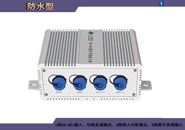 數(shù)字音頻6G-SDI嵌入器,1路6G-SDI輸入,環(huán)路直通輸出,2/4/8路嵌入分配輸出,2/4/8路數(shù)字音頻卡儂/BNC/RCA/光纖接口輸入,獨(dú)立/冗余供電,壁掛/機(jī)架,防水型 |