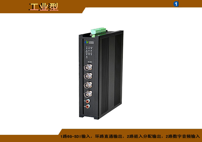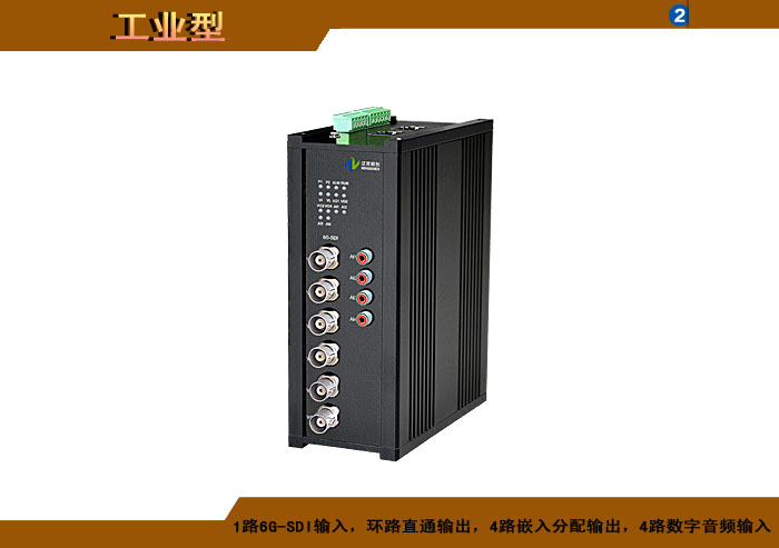 數(shù)字音頻6G-SDI嵌入器,1路6G-SDI輸入,環(huán)路直通輸出,2路嵌入分配輸出,2路數(shù)字音頻卡儂/BNC/RCA/光纖接口輸入,獨(dú)立/冗余/總線供電(DC18~36V/5V),導(dǎo)軌,工業(yè)型 |