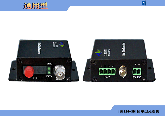 1路12G-SDI簡單型光端機發射機/接收機,數據可選,單模/多模/塑料,1/2纖,ST/FC/SC/LC/SFP光接口,15/20/25/32dB,獨立/冗余供電,壁掛,通用型 |