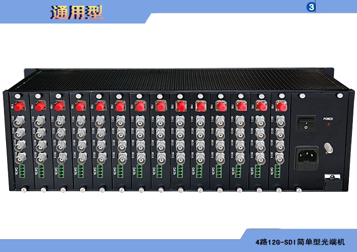 16路12G-SDI簡單型光端機發射機/接收機,數據可選,單模/多模/塑料,1/2纖,ST/FC/SC/LC/SFP光接口,15/20/25/32dB,獨立/冗余供電,插卡,通用型 |