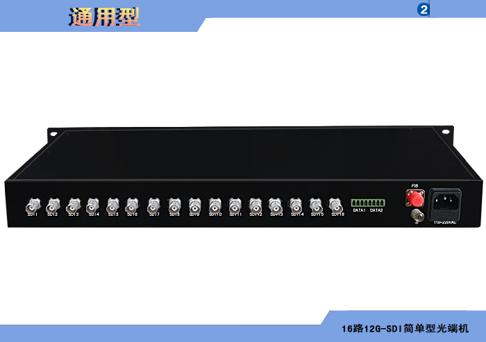 16路12G-SDI簡單型光端機發射機/接收機,數據可選,單模/多模/塑料,1/2纖,ST/FC/SC/LC/SFP光接口,15/20/25/32dB,獨立/冗余供電,機架,通用型 |