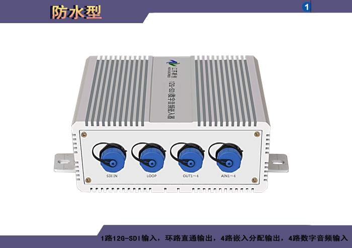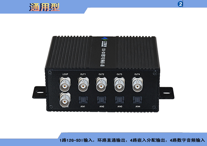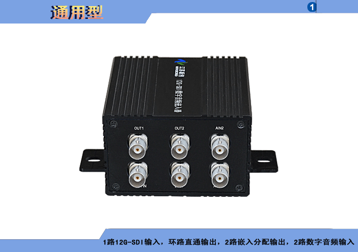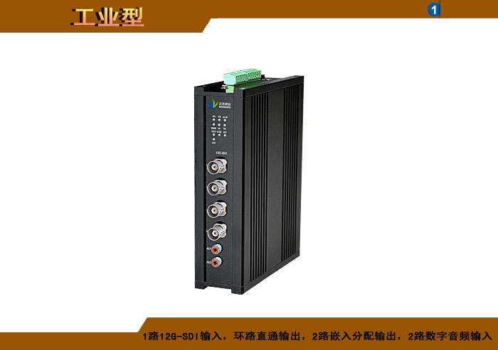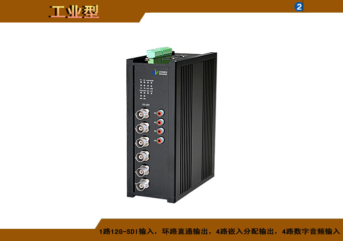 數字音頻12G-SDI嵌入器,1路12G-SDI輸入,環路直通輸出,2/4/8路嵌入分配輸出,2/4/8路數字音頻卡儂/BNC/RCA/光纖接口輸入,獨立/冗余供電,壁掛/機架,防水型 |