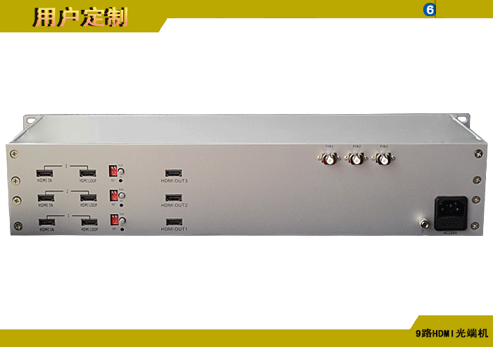9路4K HDMI簡單型光端機發(fā)射機/接收機,數(shù)據(jù)可選,單模/多模/塑料,3纖,ST/FC/SC/LC/SFP光接口,15/20/25/32dB,獨立/冗余供電,機架,通用型 |