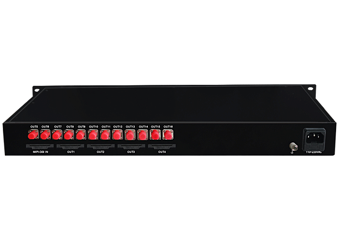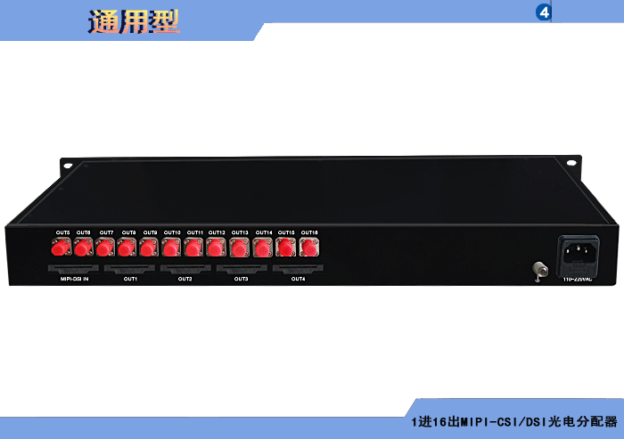 1進16出MIPI-CSI/DSI光電分配器,內置數字均衡器/抖動去除器可選,獨立/冗余供電,機架,通用型 |