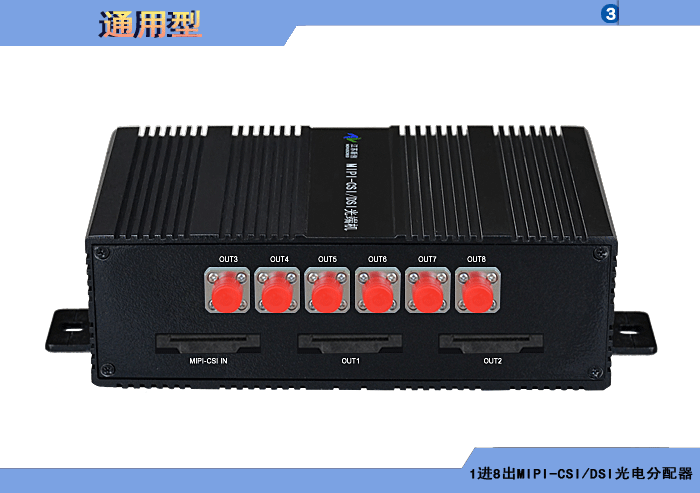 1進8出MIPI-CSI/DSI光電分配器,內置數字均衡器/抖動去除器可選,獨立/冗余供電,壁掛,通用型 |
