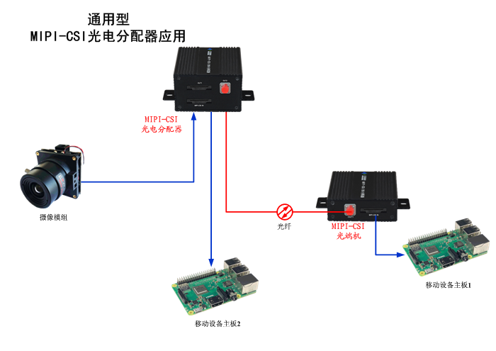 1進2出MIPI-CSI/DSI光電分配器,內置數字均衡器/抖動去除器可選,獨立/冗余/總線供電(DC18~36V/5V),導軌,工業型 |