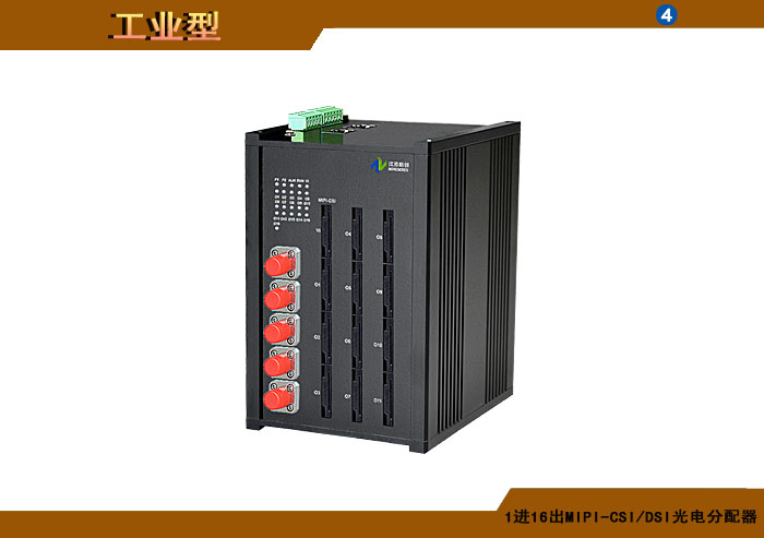 1進16出MIPI-CSI/DSI光電分配器,內置數字均衡器/抖動去除器可選,獨立/冗余/總線供電(DC18~36V/5V),導軌,工業型 |