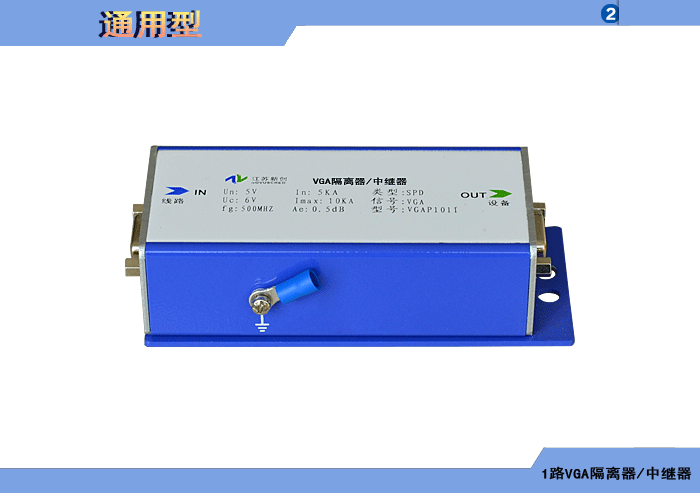 1路VGA隔離器(中繼器),最大隔離電壓2500/5000Vrms,內置5/10KA浪涌保護器可選,獨立/冗余供電,壁掛,通用型 |