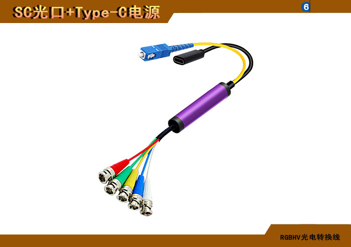 RGBHV光電轉(zhuǎn)換線 SC光纖接口+Type-C電源接口 |