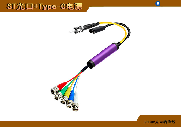 RGBHV光電轉(zhuǎn)換線 ST光纖接口+Type-C電源接口 |