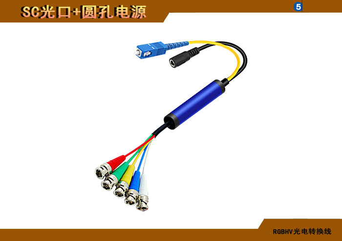 RGBHV光電轉(zhuǎn)換線 SC光纖接口+圓孔電源接口 |