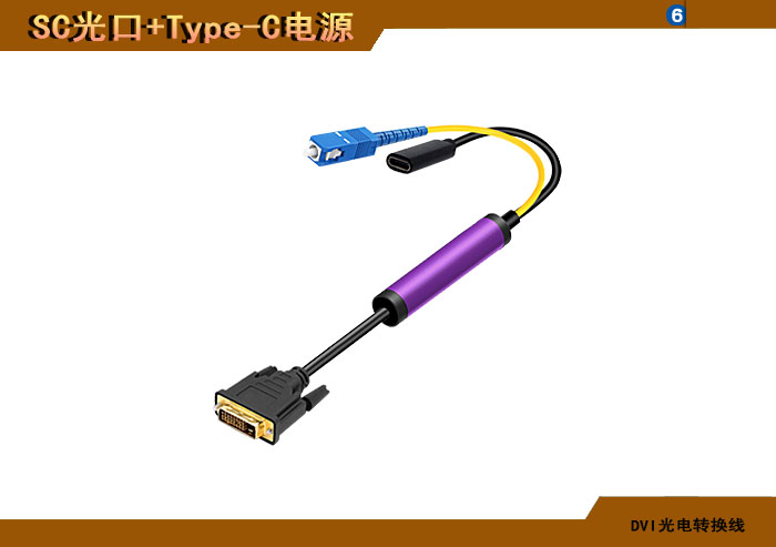 DVI光電轉(zhuǎn)換線 SC光纖接口+Type-C電源接口 |