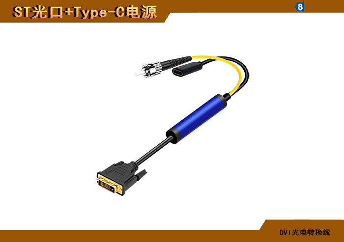 DVI光電轉(zhuǎn)換線 ST光纖接口+Type-C電源接口 |
