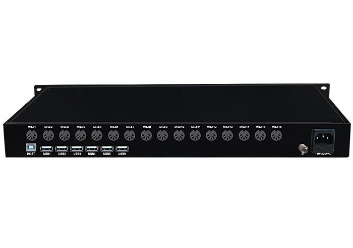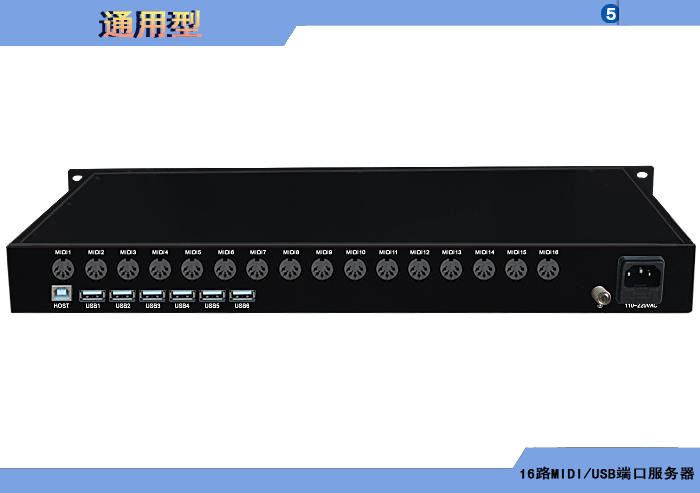 16路MIDI/USB端口服務器,1路USB主口輸入、可選多路下游口輸出,可選內置數字隔離器,最大隔離電壓2500/5000Vrms,可選內置5/10KA浪涌保護器,獨立/冗余/總線供電(DC18~36V/5V),壁掛/插卡/機架,通用型 |